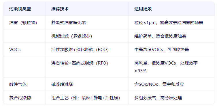 凈化效率:油霧≥95%,VOCs≥90%,顆粒物≤10mg/m³。