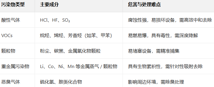 一、鋰電池回收熱解爐廢氣核心成分分析
