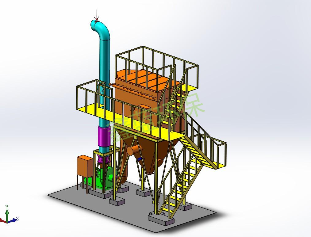 鑫藍環保布袋除塵設備三維圖