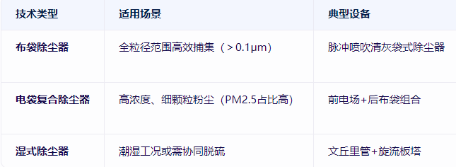 分級處理:粗顆粒預分離→細顆粒高效捕集。