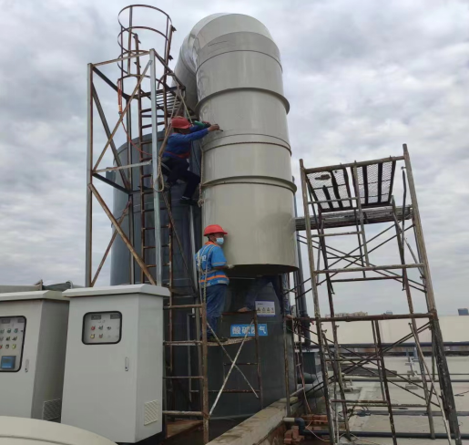 塔體放置二層填料層并配置二級高壓水浴裝置,經二級噴淋裝置清洗后,通過濾水裝置,凈氣達標外排。