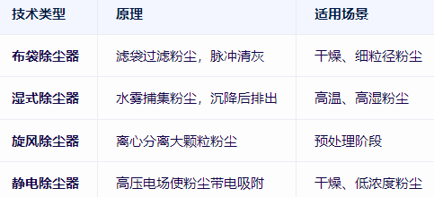 根據(jù)粉塵性質(zhì)選擇以下一種或組合技術(shù):