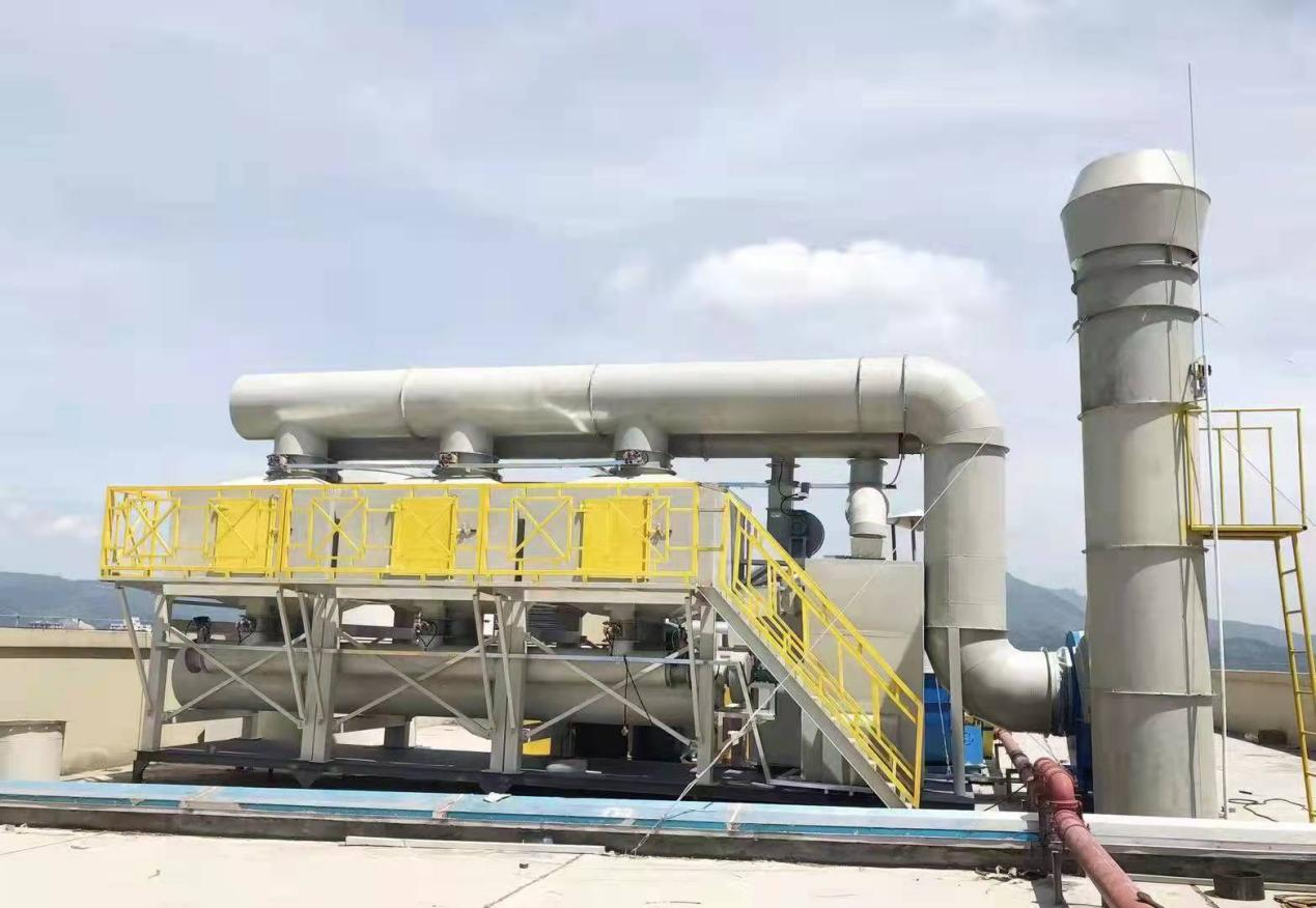 當(dāng)有機廢氣的流量大、濃度低、溫度低、采用催化燃燒需消耗大量的燃料時,可先采用吸附手段將有機廢氣吸附于吸附劑上并進行濃縮,然后通過熱空氣吹掃,使有機廢氣脫附成為高濃度有機廢氣(可濃縮10倍以上)后再進行催化燃燒。不需要補充熱源就可以維持正常運行。